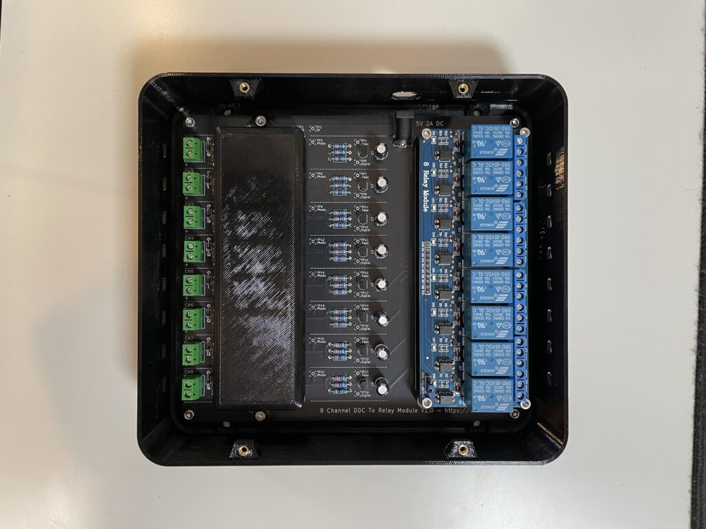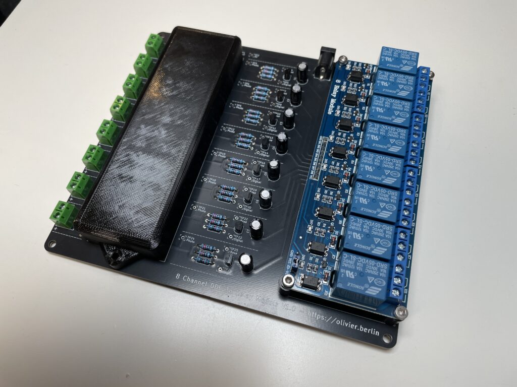 With the PCB having its own power supply for the relays and the transistors, and all signals transferred optically or via relays, every channel is galvanically isolated on the input and on the output side. This minimizes potential sources for problems and makes this solution not only cheap but also reliable for years to come.